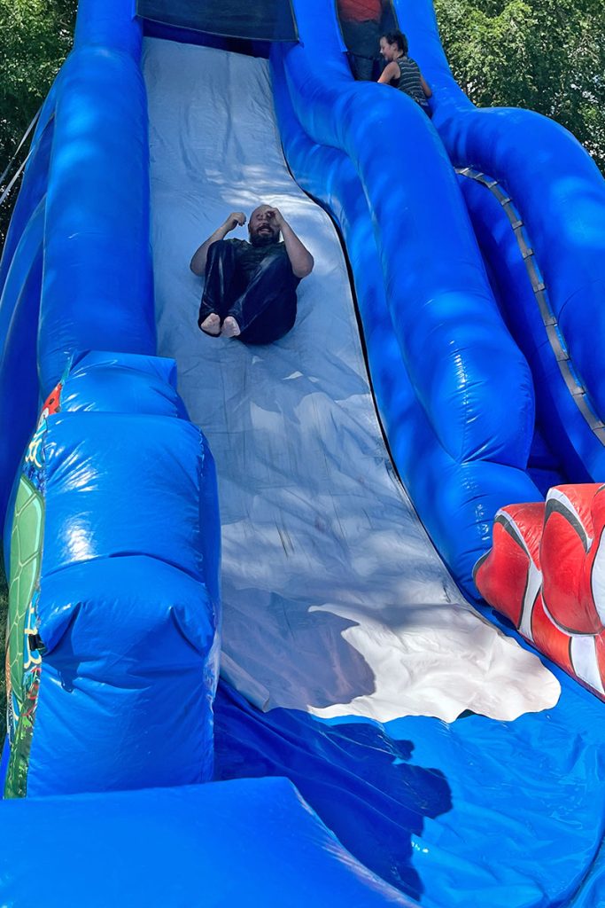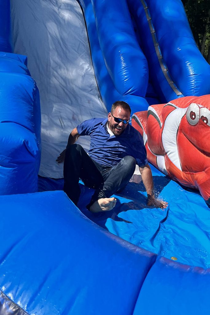 Managers joined in on the fun sliding down the waterslides!